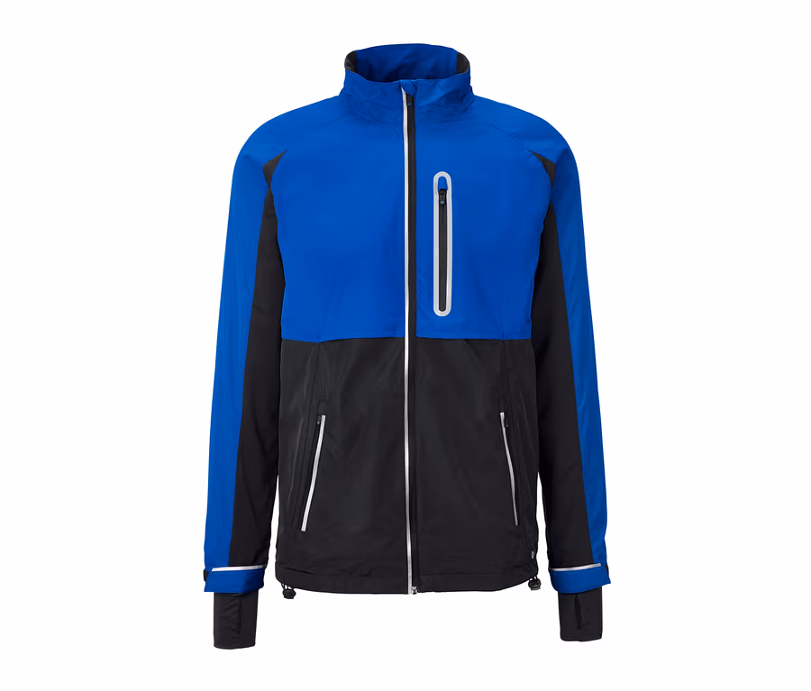 Les manches raglan et les empiècements élastiques assurent une liberté de mouvement optimale. Avec les fermetures velcro sur les bras et un cordon coulissant au niveau de l’ourlet, la veste de sport peut être ajustée de manière individuelle. Les deux poches sur les côtés et la poche sur la poitrine comportent une fermeture éclair et sont équipées d’un passepoil réfléchissant. La fermeture éclair sur le devant dispose également d’un passepoil réfléchissant et d’une protection du mention tout en haut. Les revers des manches comportent un trou pour le pouce.