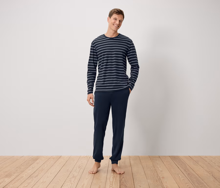 Pyjama à ourlets, bleu foncé à rayures
