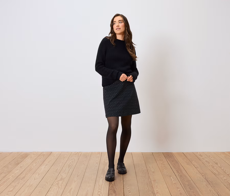 68% coton (soutient l’initiative Cotton made in Africa), 25% polyester, 6% polyester métallisé, 1% élasthanne (Creora®)