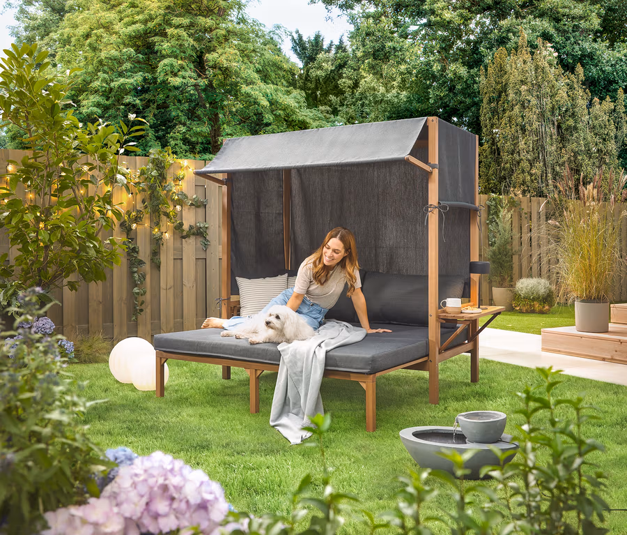 - Toutes les housses de coussins, l’auvent, les parois arrière et latérales sont amovibles et lavables à 40°C
