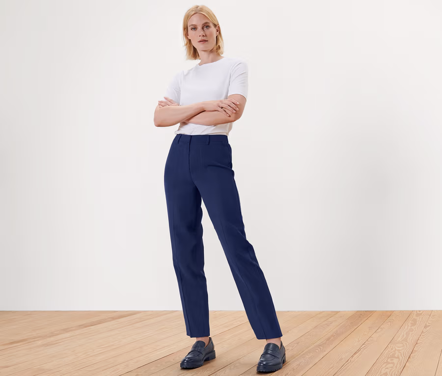 - Taille avec passants de ceinture à l’avant et empiècement élastique au dos