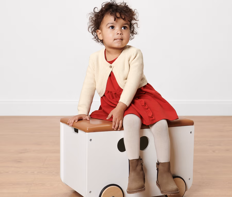 - Avec bouton aspect bois pour faciliter l’habillage et le déshabillage
