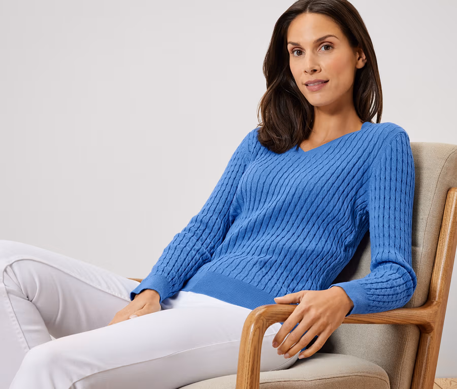 Pull en maille torsadée, bleu