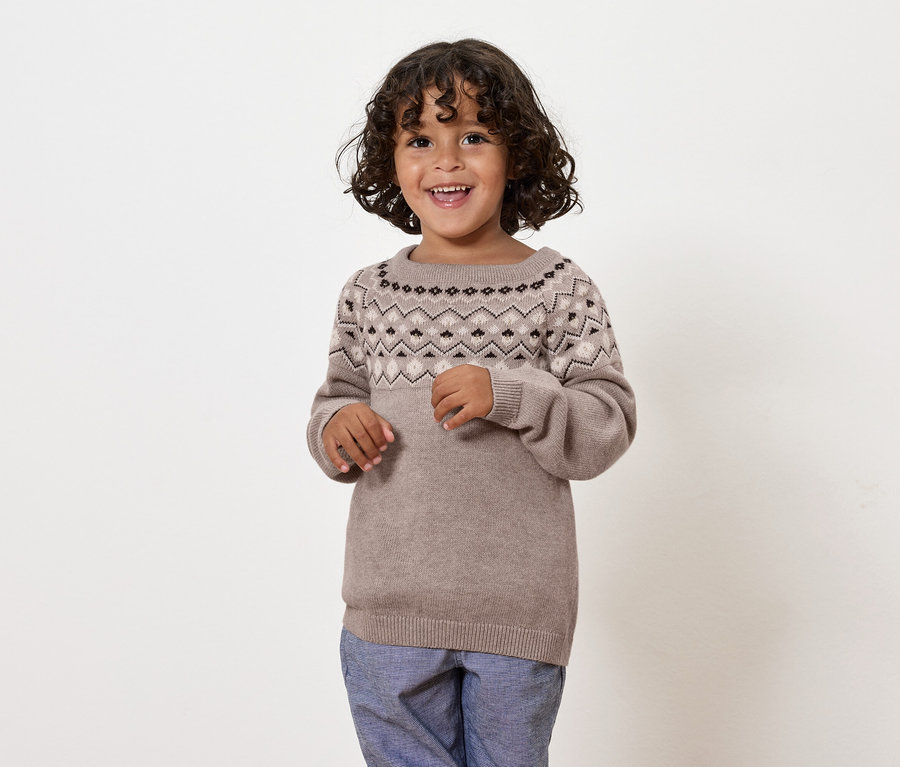 - Crème chiné avec motif norvégien bleu marine, blanc et doré
