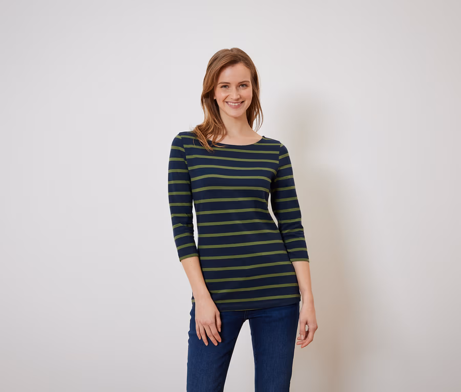 T-shirt manches 3/4, bleu marine-vert