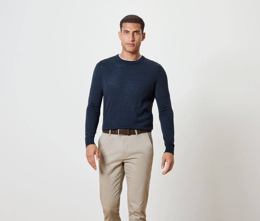 Pull en laine mérinos, bleu foncé chiné