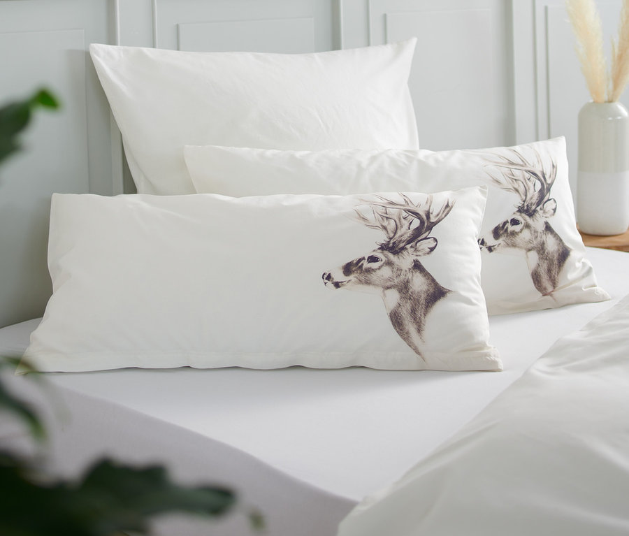 - 1 côté blanc crème avec imprimé cerf, 1 côté blanc crème