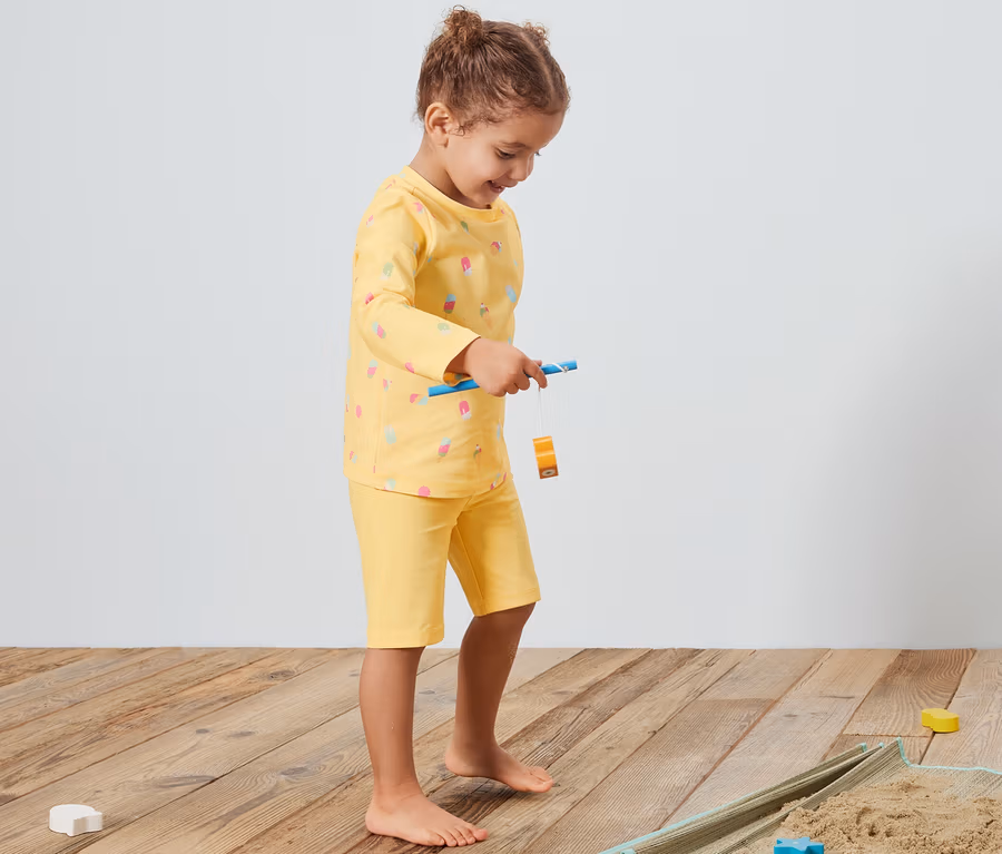 Combinaison pour enfants avec indice de protection UV 80, jaune