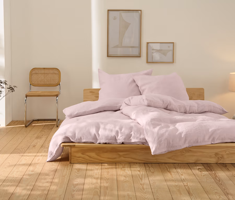 Parure de lit en lin, rose, taille normale