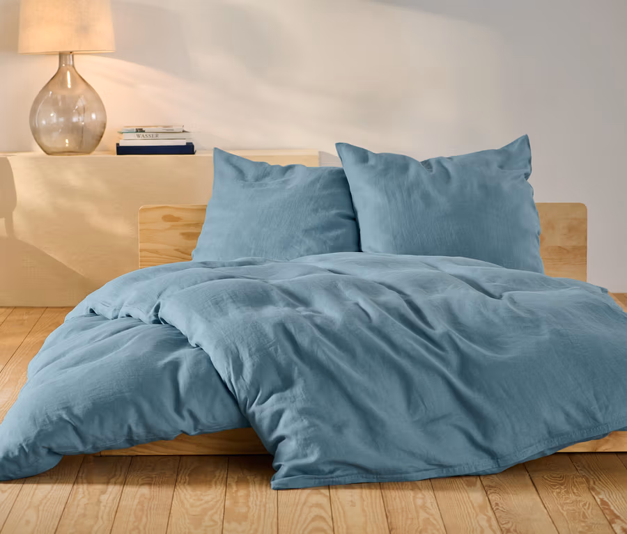 Parure de lit en lin, bleue, taille normale