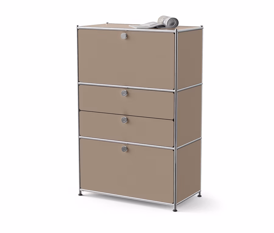 Commode en métal « CN3 » à 2 abattants et 2 tiroirs, taupe