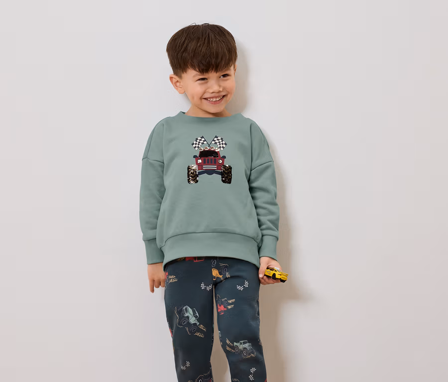Sweatshirt pour enfant avec intérieur gratté, application camion