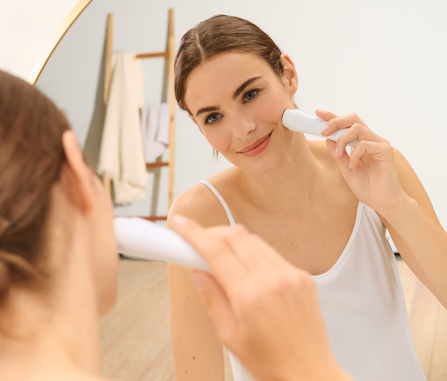 - Élimination douce et indolore des poils du visage, par exemple sur la lèvre supérieure, le menton et les joues