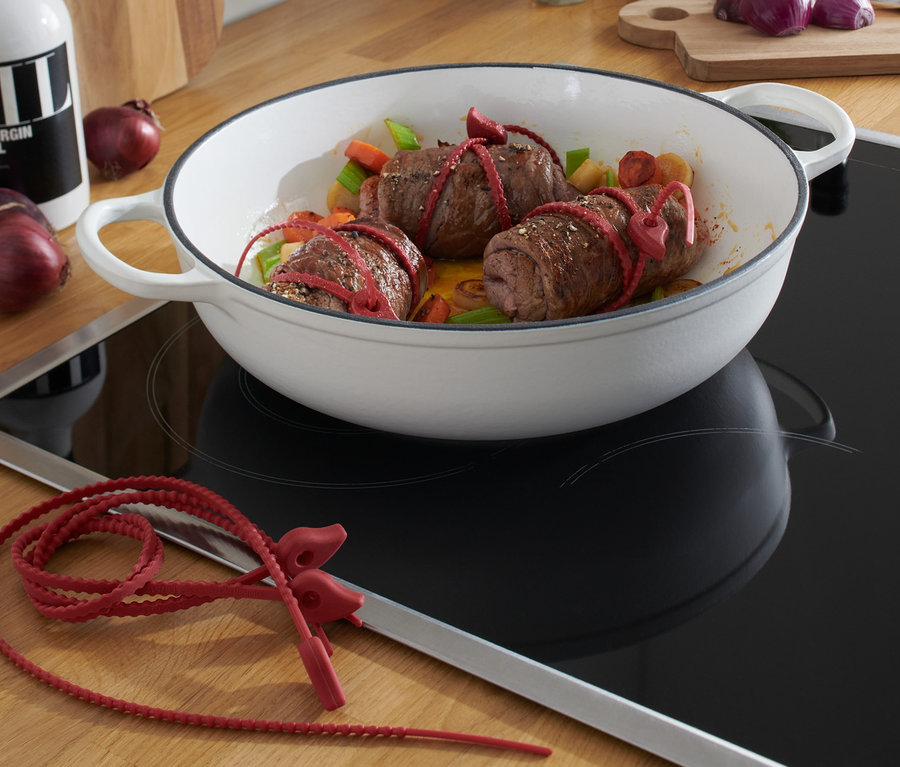 • Toujours réutilisable - remplace les ficelles de cuisine et les brochettes