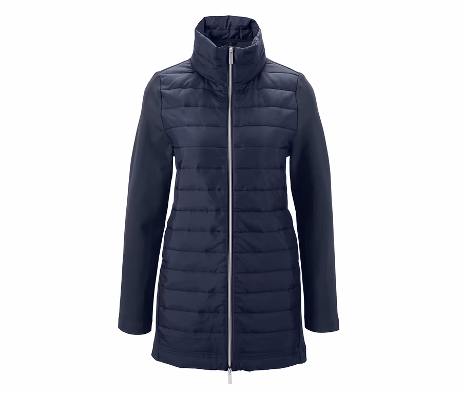 Un rembourrage très léger et chaud se trouve sur le devant et permet de résister aussi aux basses températures. Le dos et les manches sont fabriqués en jersey doux et fluide de qualité – pour que le manteau s’adapte à chaque mouvement. La fermeture éclair contrastée sur le devant confère un aspect tendance. Les deux poches fendues à fermeture éclair offrent de la place pour les gants ou les mains par exemple.