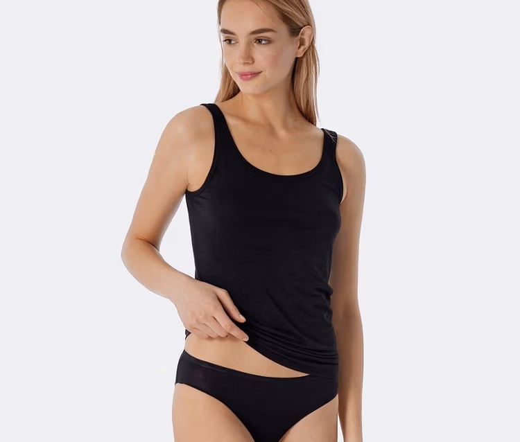 2 débardeurs à bretelles SCHIESSER avec modal, noirs, à rayures