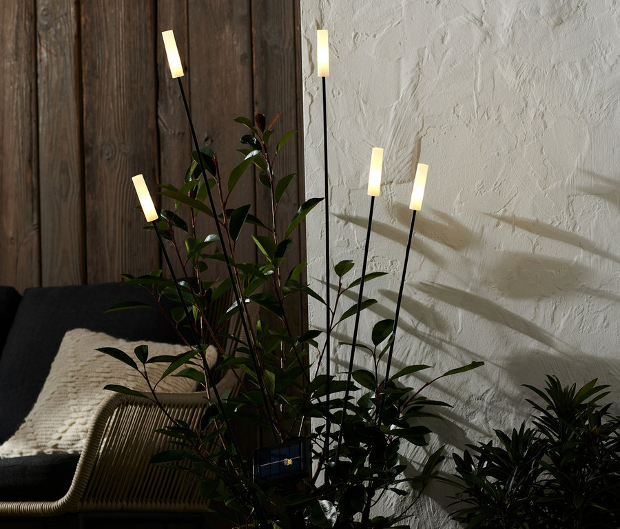 - 5 piquets avec lampes LED : hauteur 2x env. 110 cm, 3x env. 90 cm