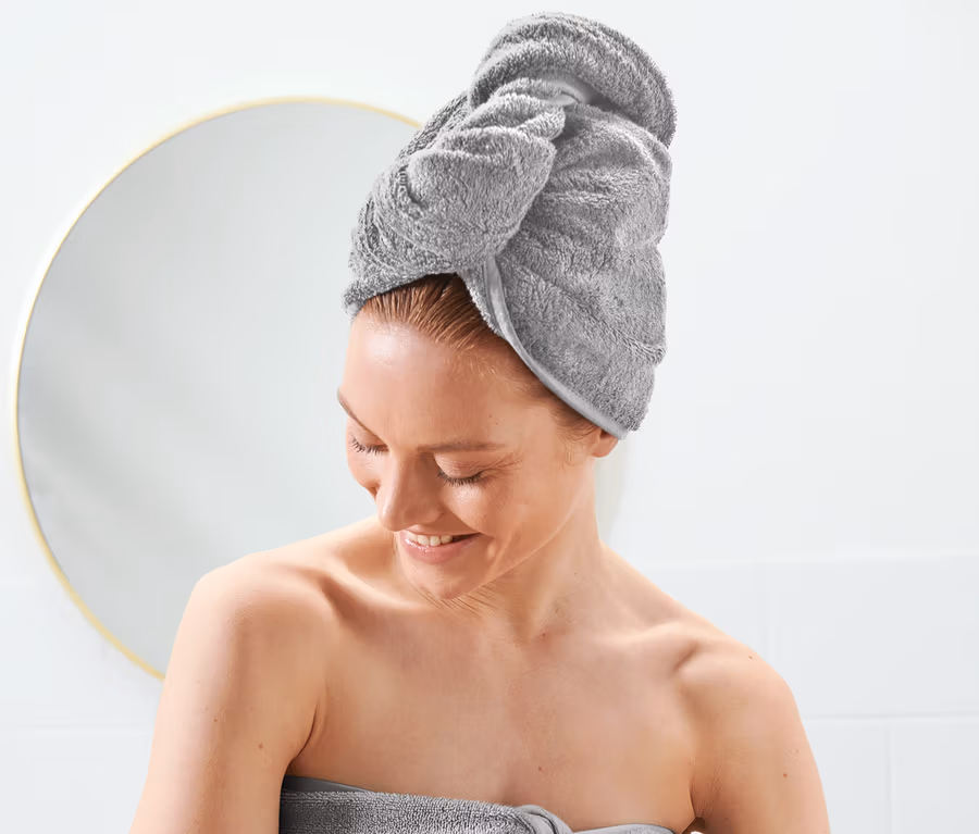- Cette serviette turban protège les ressources d'eau