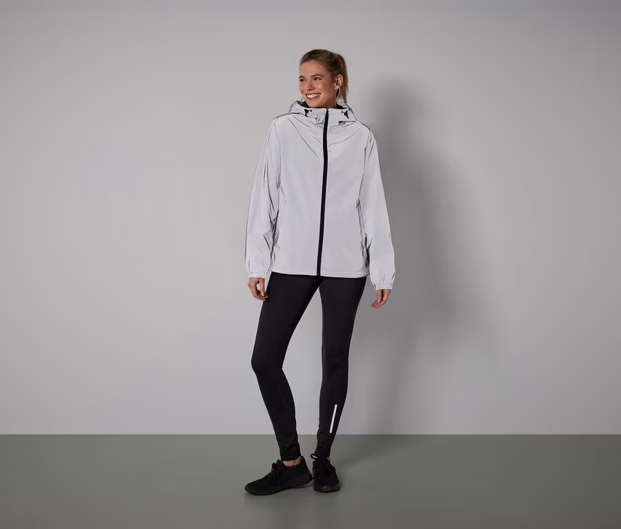 - Capuche réglable en largeur avec cordon de serrage et butée