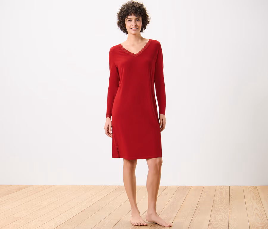 Chemise de nuit avec parementure en dentelle, rouge
