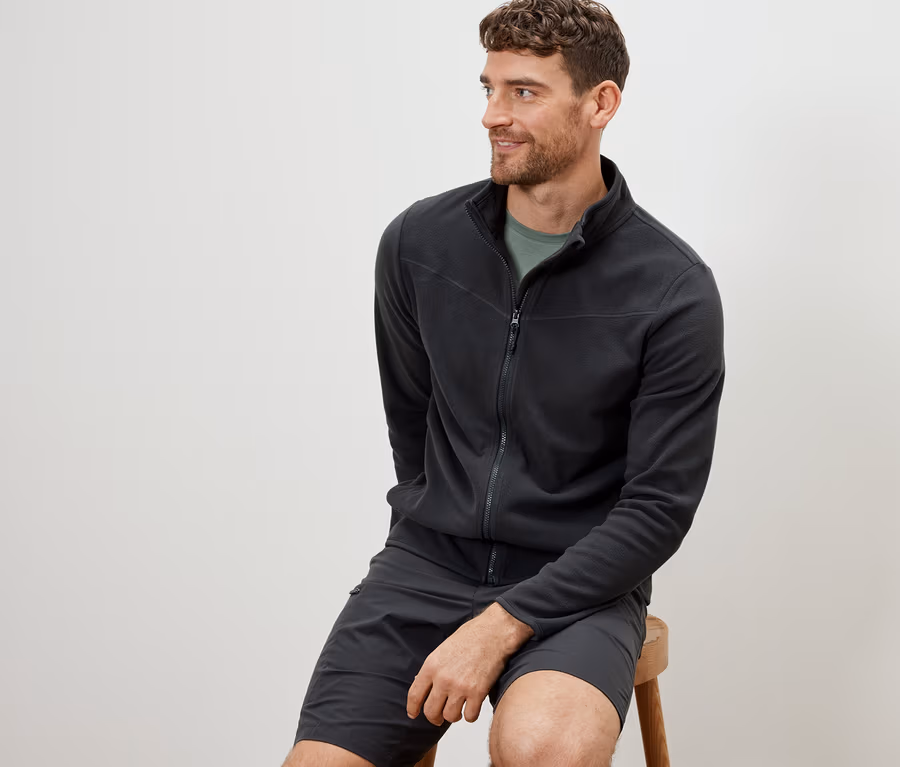 • Fermeture éclair avant sur toute la longueur avec protection du menton