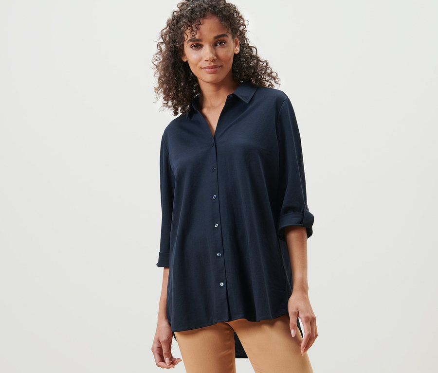 Chemisier en jersey piqué, bleu foncé
