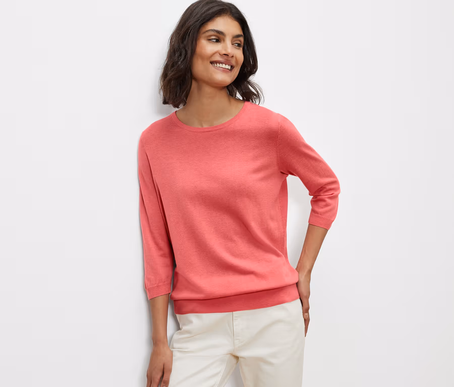Pull-over en maille fine avec soie, corail