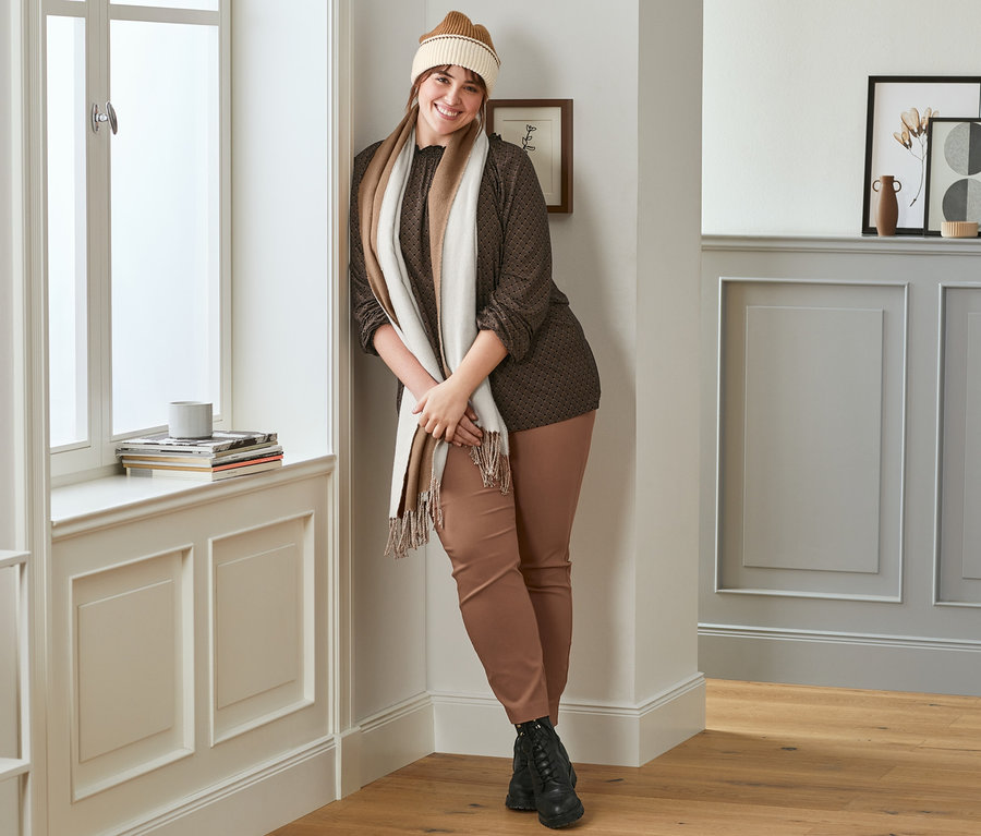 Bonnet en maille, crème-cognac