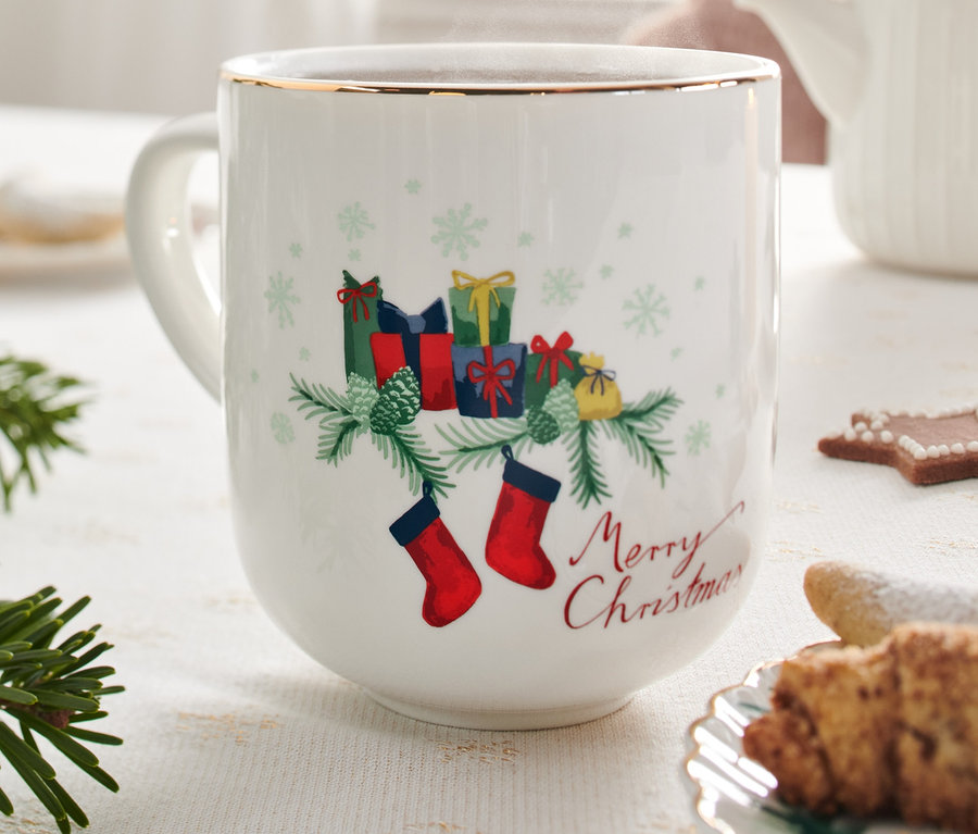- Avec décoration dorée et brillante sur le bord de la tasse
