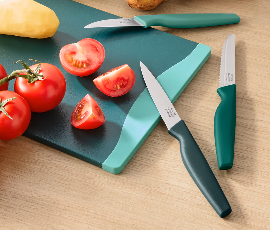 - Le bon couteau pour chaque utilisation : éplucheur, couteau à fruits et légumes et couteau d’office