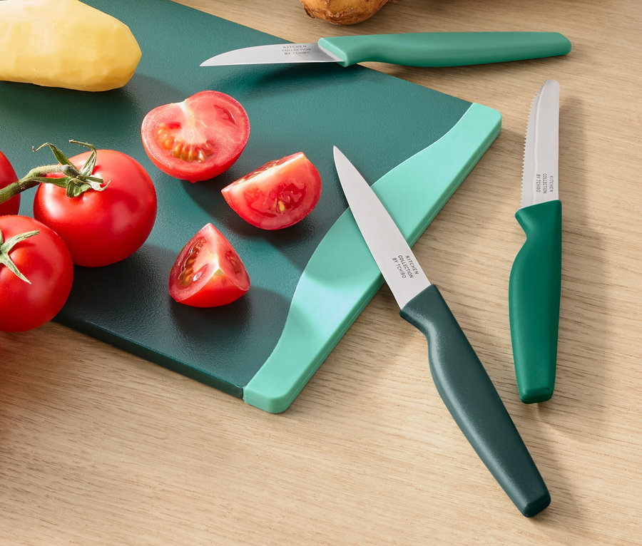 • Le bon couteau pour chaque utilisation : éplucheur, couteau à fruits et légumes et couteau d’office