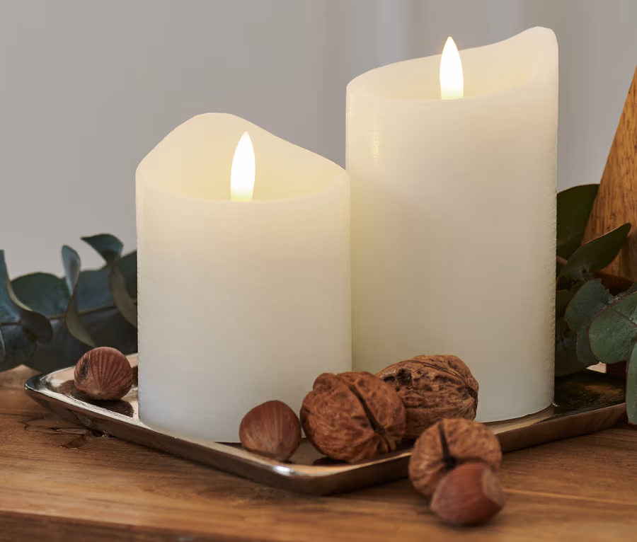 - Imitent la lueur d’une bougie grâce à la flamme LED et à l’effet de vacillement
