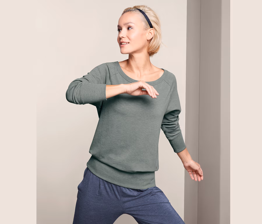 - Sweat-shirt pour femmes en matière particulièrement douce et fluide grâce à sa teneur en viscose