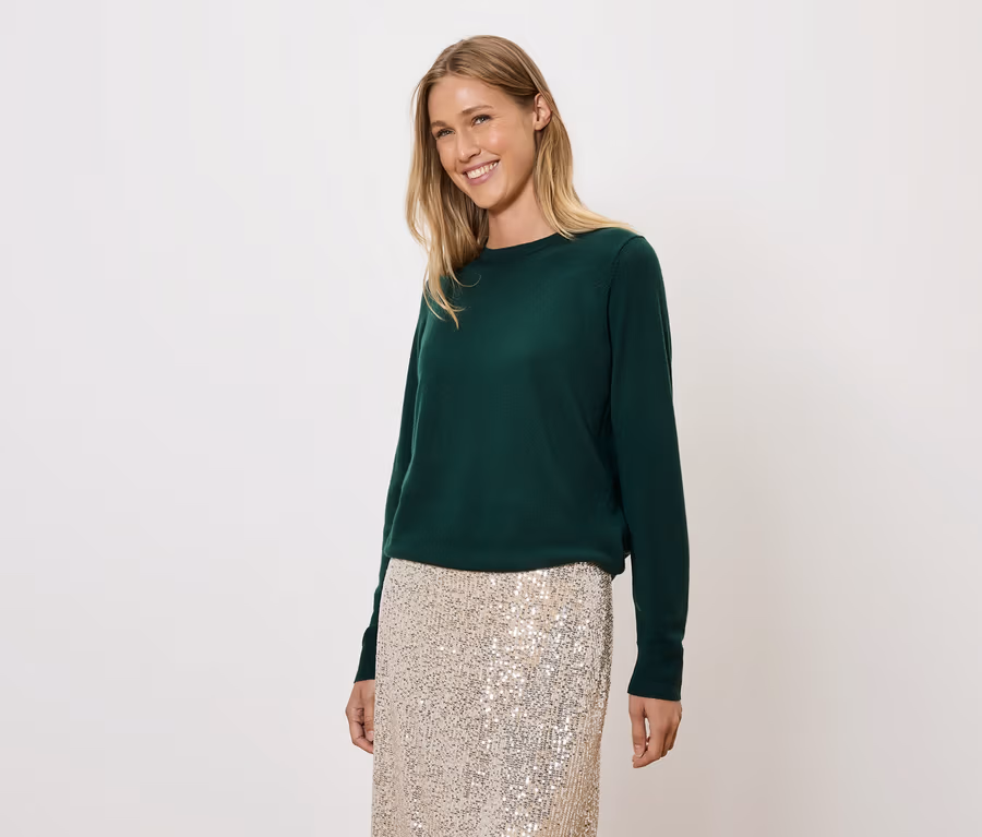 Pull en maille fine de laine mérinos, vert foncé