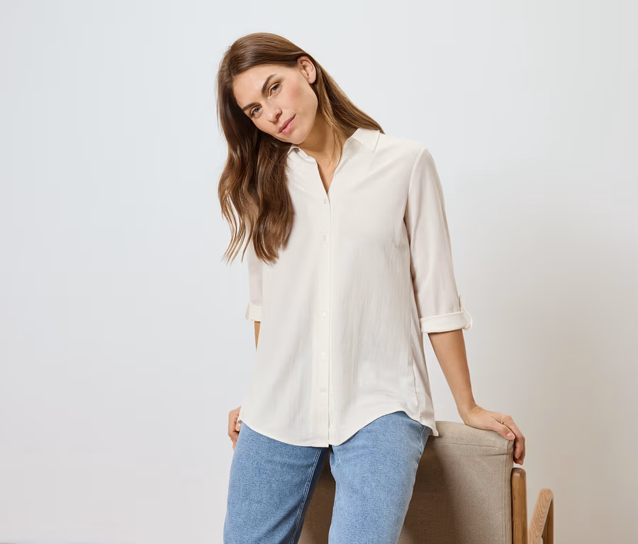 - Manches 3/4 retroussables à fixer grâce à une patte