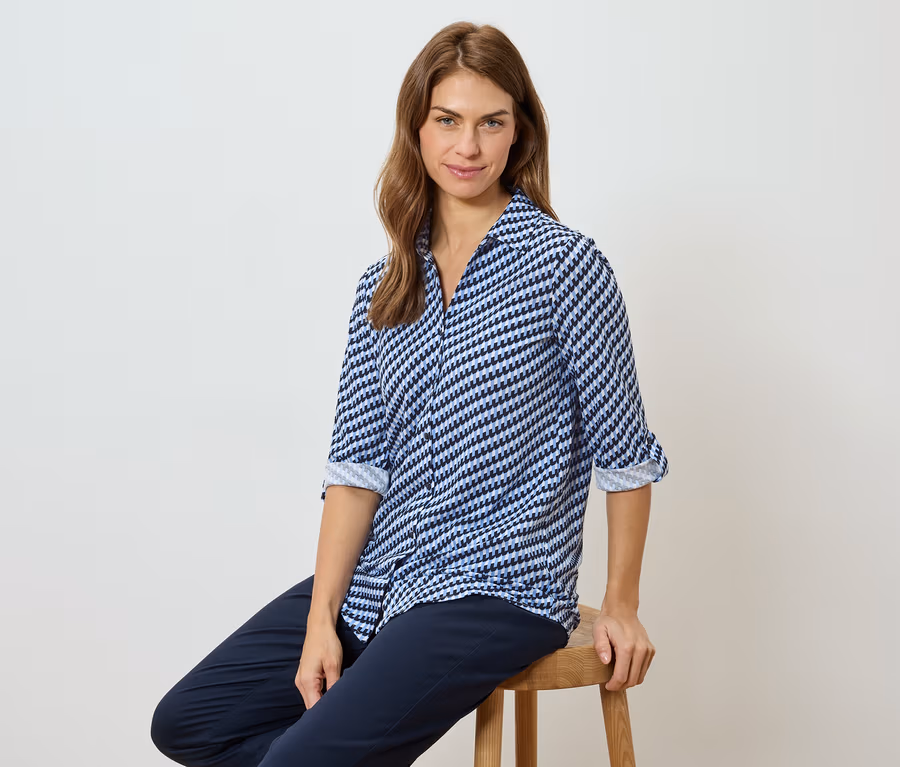Blouse en jersey piqué, imprimé intégral bleu foncé-blanc-bleu clair