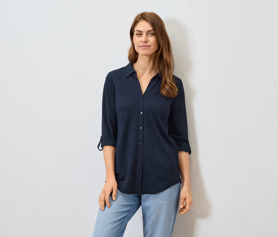 Chemisier en jersey piqué, bleu foncé