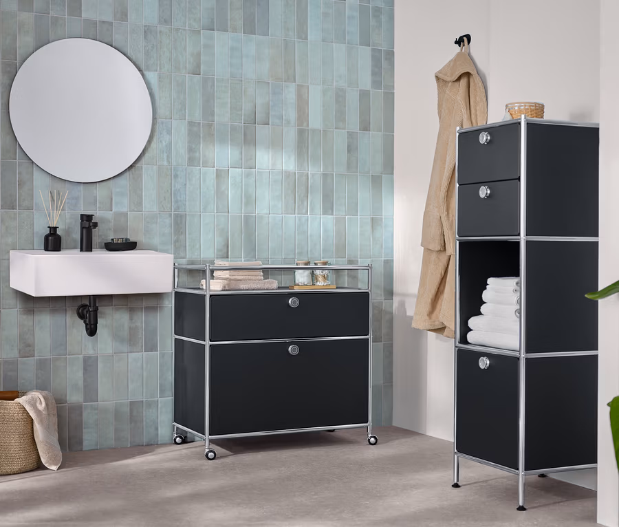 Commode métallique « CN3 » avec 1 tiroir, 1 compartiment à abattant et contour