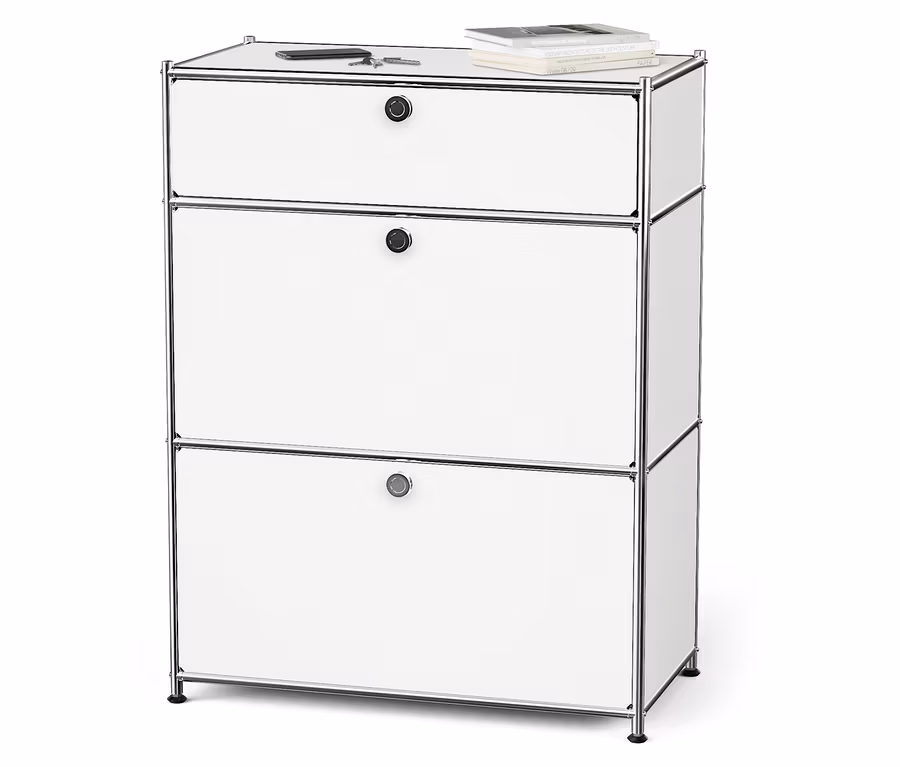 Commode Métal « CN3 » à 1 tiroir et 2 abattants, blanc