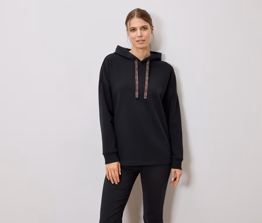 Sweatshirt long à capuche, noir