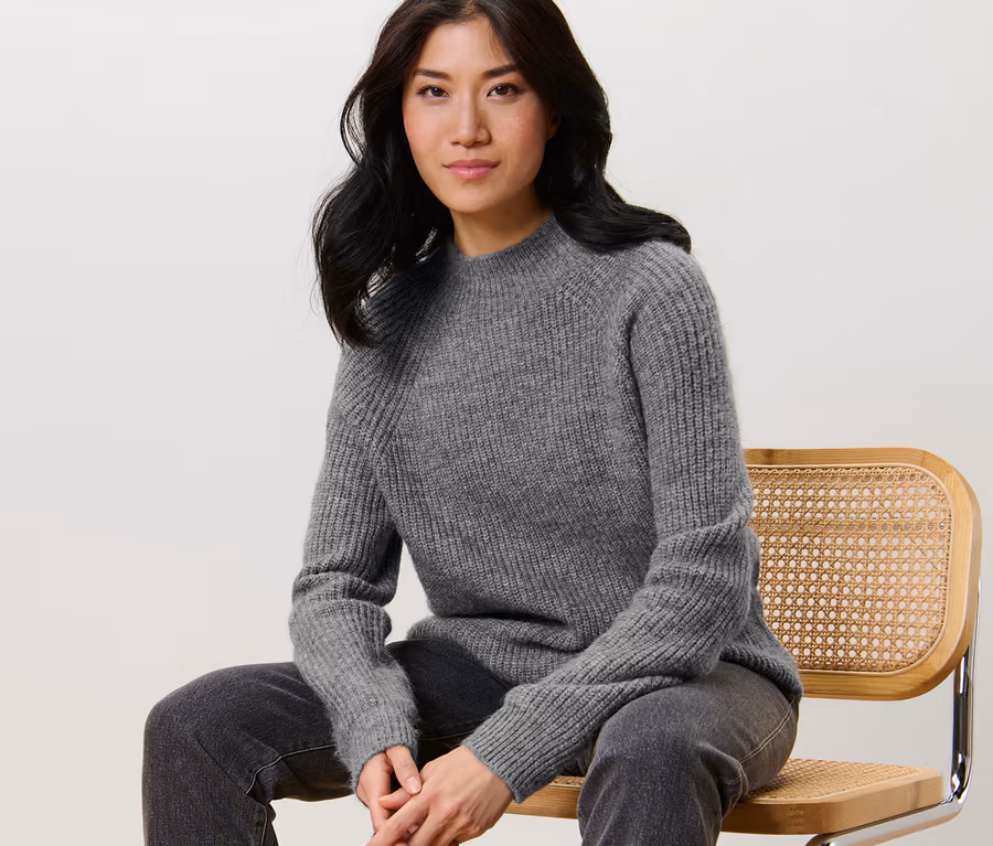 Pull à col droit en grosse maille, gris