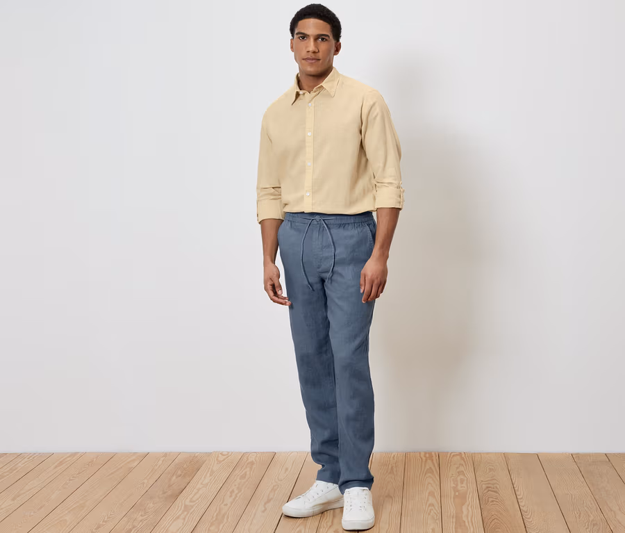 Pantalon chino en lin, bleu
