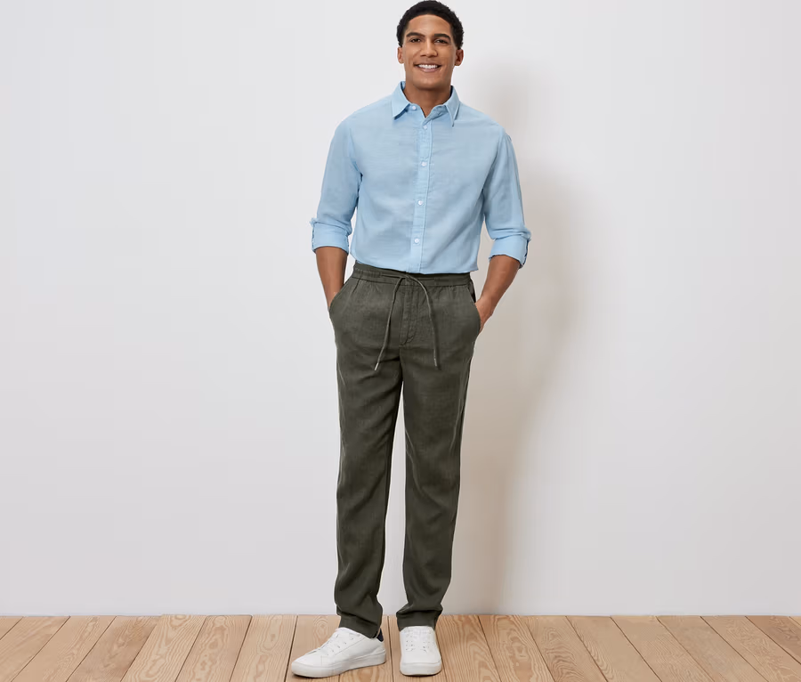 Pantalon chino en lin, kaki