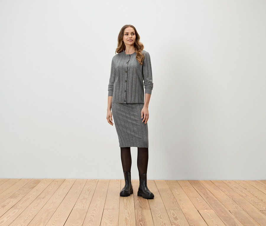 - Cette jupe tricotée respecte le bien-être des moutons.