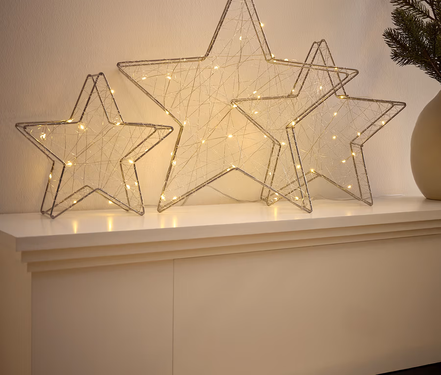 - Étoiles 3D en métal avec micro-guirlande lumineuse décorative