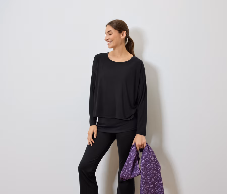 Longueur totale Haut manches longues env. 57 cm, Top env. 68 cm (taille M 40/42)