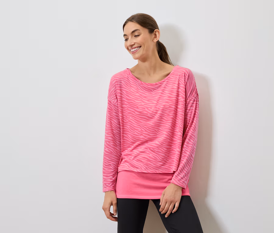- Longueur totale Haut manches longues env. 57 cm, Top env. 68 cm (taille M 40/42)