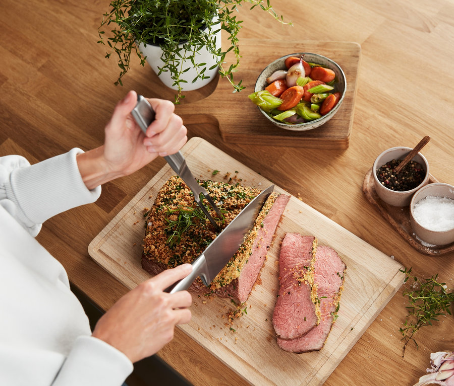 • Couteau à découper en acier de lame de haute qualité et fourchette à découper en inox