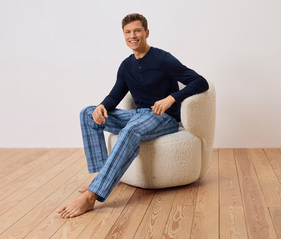 • Pantalon de pyjama relax en pur coton à texture tissée