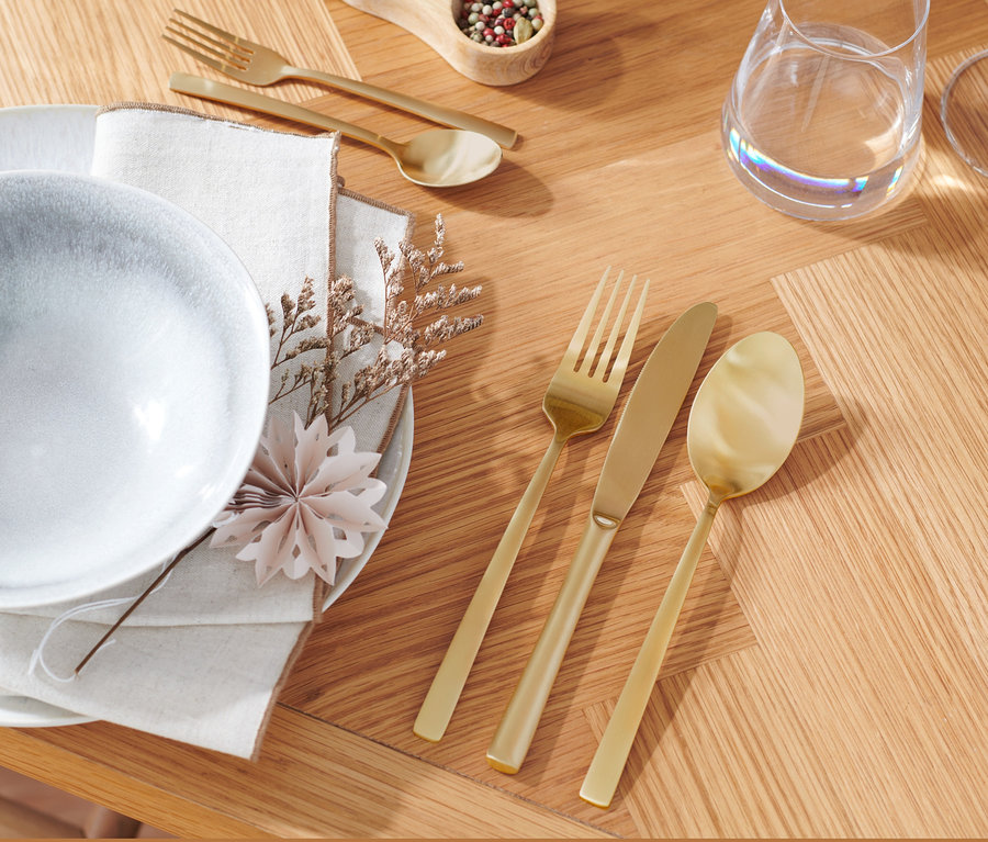 - Fourchettes et cuillères en acier inoxydable 18/10, avec revêtement PVD
